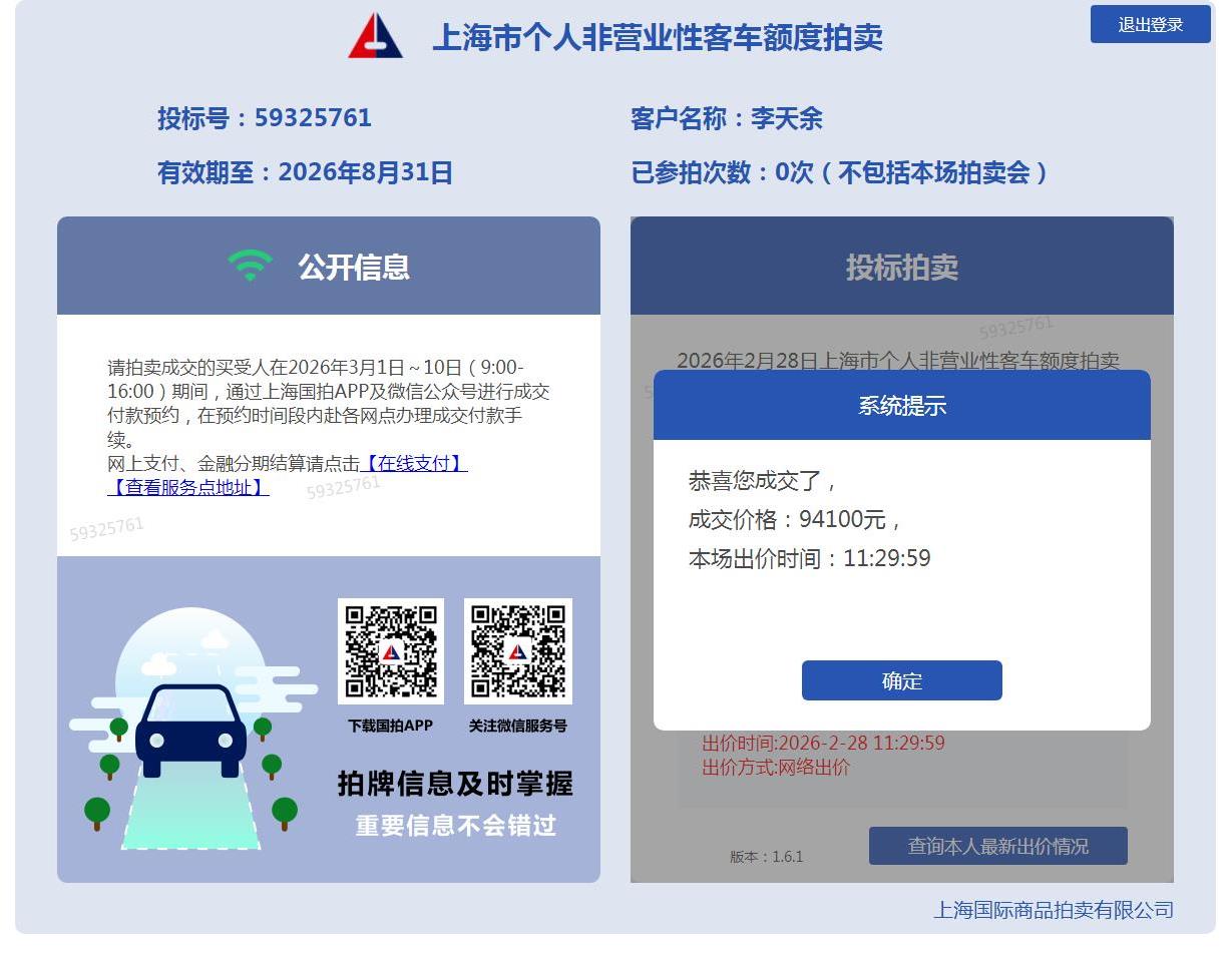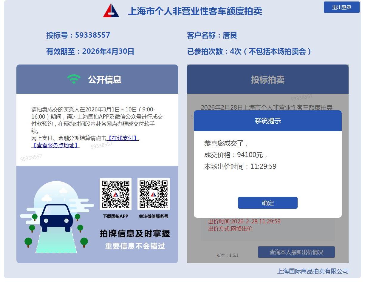 中标真的快,代拍帮拍牌值得信赖,换了这一家,第二次就拍中了,超级赞
